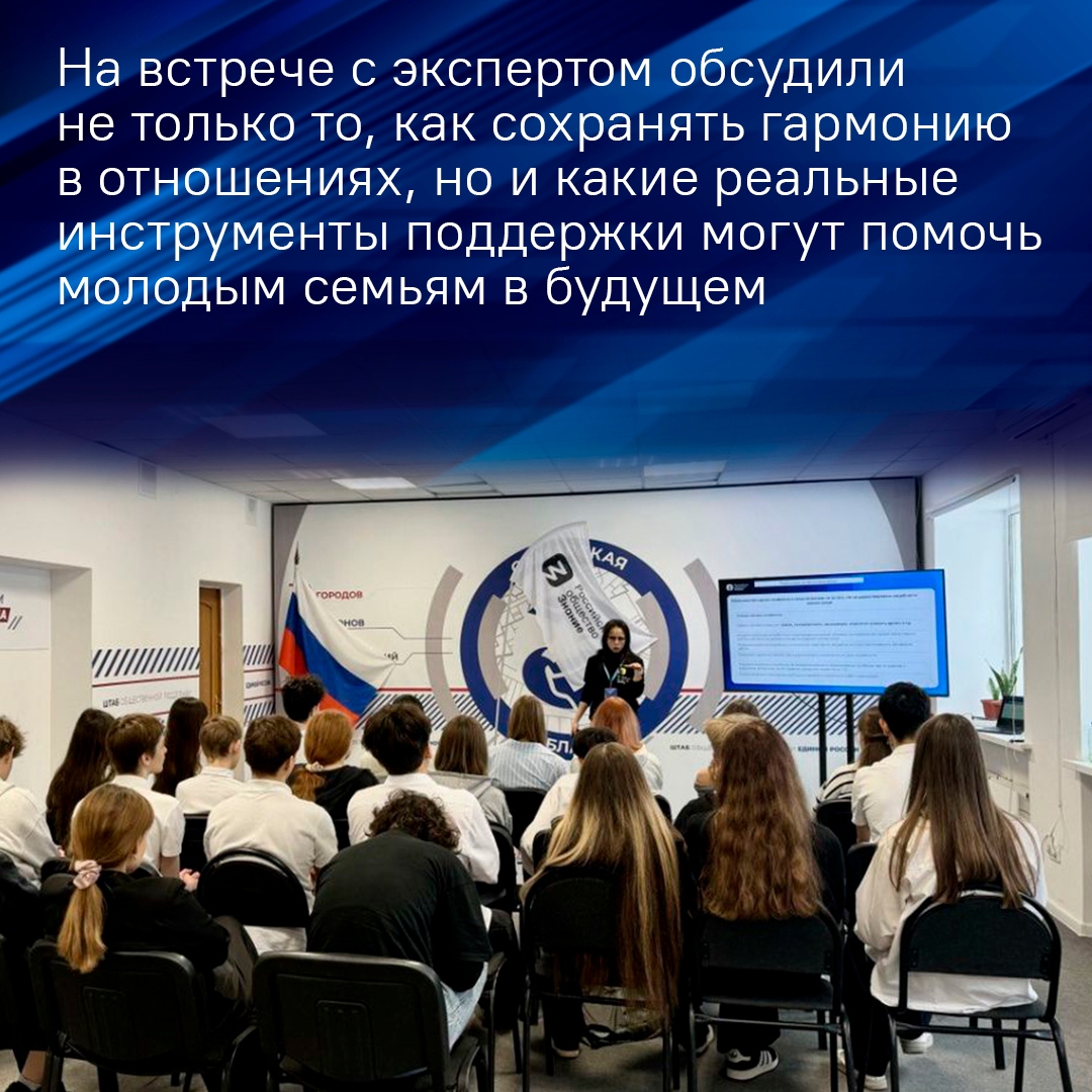 Встретились по-семейному Как построить и сохранить семейное счастье на долгие годы? О гармонии и поддержке рассказала школьникам эксперт Высшей школы современного образования, лектор Российского общества «Знание» Елена Бобкова. В ходе интерактивной беседы ребята не только узнали об истории и смысле…